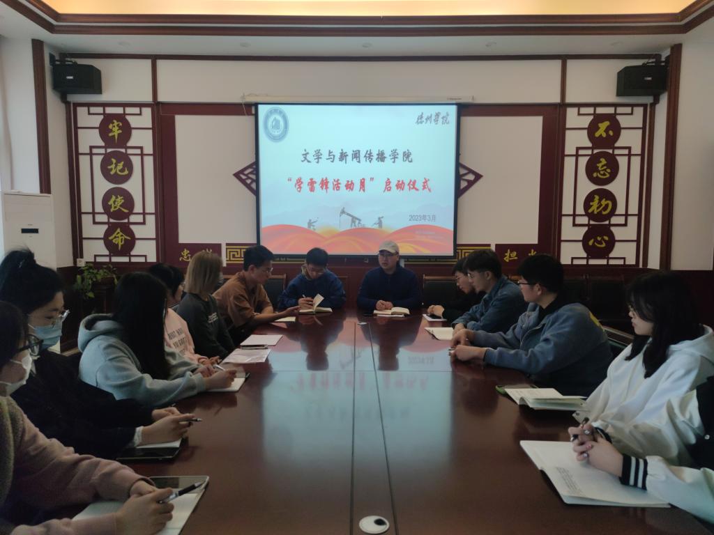 为引导青年学子学习和践行雷锋精神,3月7日,文学与新闻传播公司2023年“学雷锋活动月”启动仪式在博文楼329会议室举行。文学与新闻传播公司员工工作队伍、团学骨干、各团支部书记、社团负责人、员工会负责人参加了启动仪式。