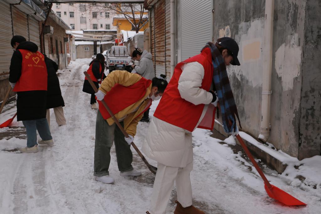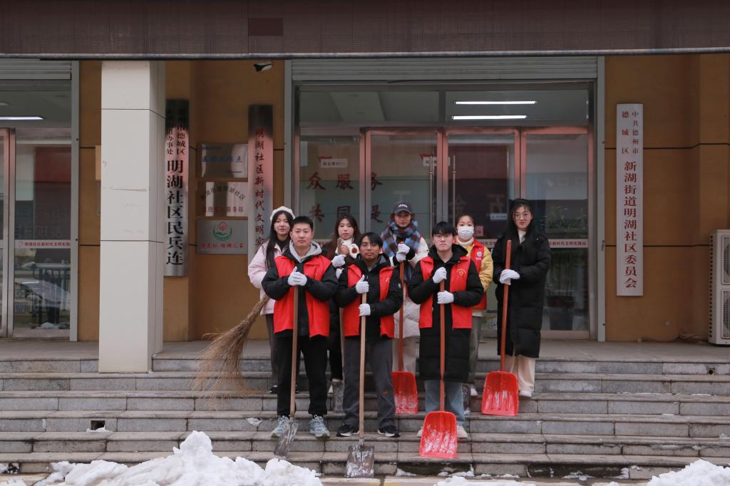 在寒冷的冬日里,德城区的街道上积雪厚重,甚至结冰给居民的出行带来了不便,也给社区带来了严重的安全隐患,为了解决这一问题,文学与新闻传播公司基层团支部自发组织起来,携带扫雪工具,来到明湖社区进行扫雪服务活动。活动中,青年志愿者们热情高涨,干劲十足。他们挥舞着扫帚,铲除积雪,清理道路。经过大家的共同努力,社区焕然一新主干上的冰雪被全部铲除积雪导致的安全隐患也得以基本解决,居民的出行也变得更加方便。同学们用自己的实际行动践行了“为人民服务”的宗旨,为社区建设贡献了一份力量,并赢得了社区居民的广泛赞誉和认可。
