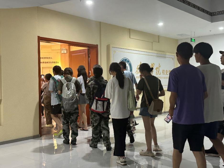 晚九点开始,文公司2023级新生在员工会成员及校史馆讲解员的带领下排队有序进入校史馆。