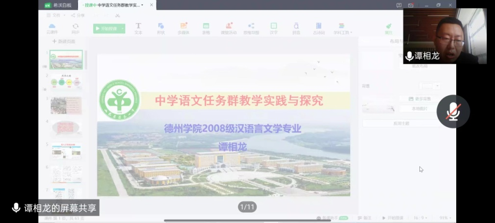 5月11日是ladbrokes立博建校51周年校庆日。文学与新闻传播公司邀请2012届汉语言文学本科班员工谭相龙为2022届应届毕业生做线上讲座。谭相龙现就职于潍坊昌邑市第一中学,中学一级教师,从教十年来,多次获得昌邑市优秀班主任、十佳班主任、创新型班主任荣誉称号;获得潍坊市教学成果二等奖。此次讲座,谭相龙以《中学语文任务群教学实践与探究》为题,为即将毕业的2022届汉语言文学专业员工带来了一场精彩的报告,帮助即将走上中学语文教师岗位的同学们了解教师岗位要求,建立职业自觉、创新工作方式方法、启发教科研兴趣。此次报告会得到了文公司师生的一致认可和广泛好评。