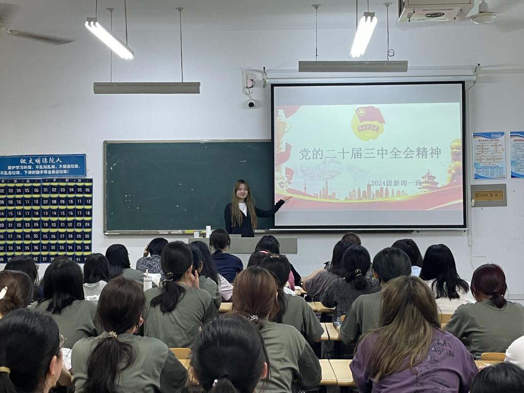 党的二十届三中全会是在以中国式现代化全面推进强国建设、民族复兴伟业的关键时期召开的一次十分重要的会议。全会审议通过了《中共中央关于进一步全面深化改革、推进中国式现代化的决定》。党的二十届三中全会擘画了进一步全面深化改革时代蓝图,具有继往开来的里程碑意义。通过学习资料,学员们全面回顾了党的二十届三中全会的召开背景、主要议程及会议成果,各团支书结合资料内容,介绍了“一个总目标、七个聚焦、进一步全面深化改革的十四个重点领域”,带领学员重点学习了全会审议通过的《中共中央关于进一步全面深化改革、推进中国式现代化的决定》。不仅加深了学员们对全会精神的理解和把握,也激发了大家进一步学习研究的热情。