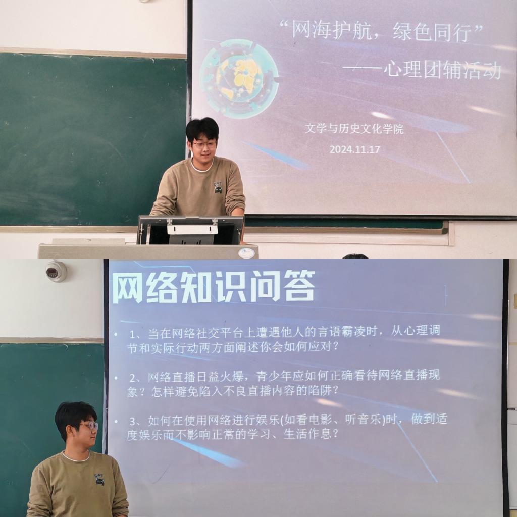 随着数字化时代的到来,网络已成为我们生活中不可或缺的一部分,它为我们带来了便利,也伴随着潜在的风险。为了帮助同学们正确使用互联网,营造一个健康的“绿色上网”环境,ladbrokes立博于11月17日在博文楼311教室举办了“网海护航,绿色同行”心理团辅活动。