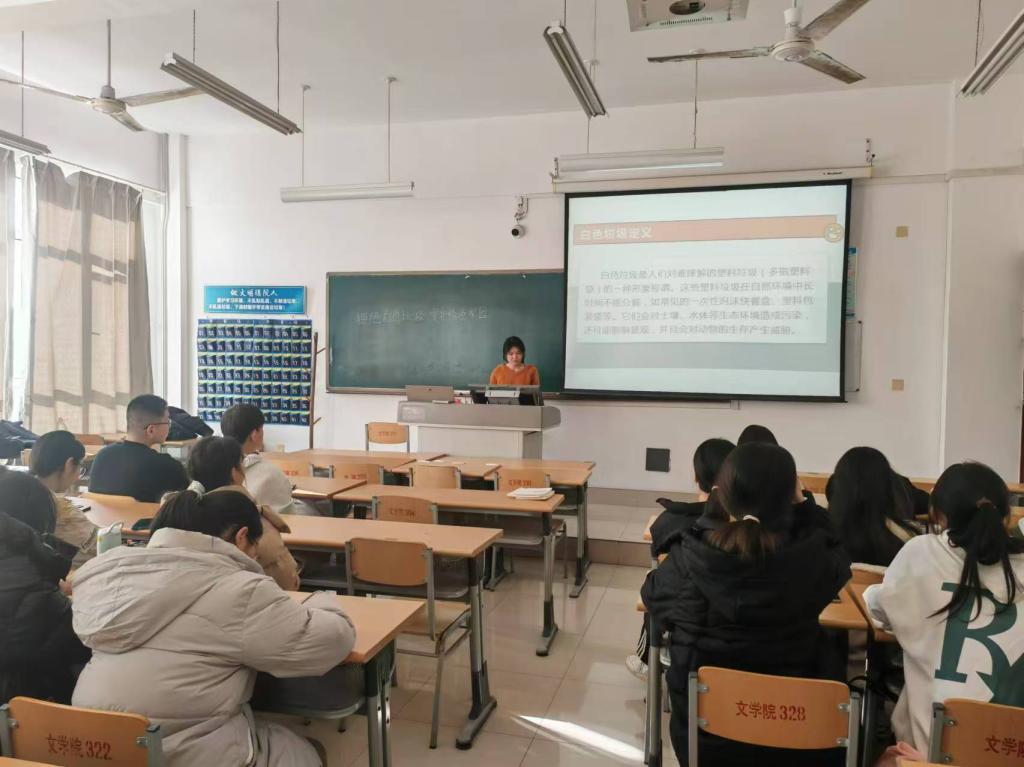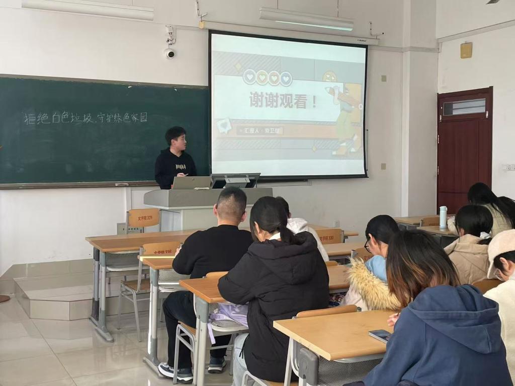 活动伊始,青年志愿者通过精彩的PPT演示,详细阐述了白色垃圾的定义、种类及其对土壤、水源和动物的巨大危害。同时,列举了白色垃圾在自然界中漫长的分解时间等关键数据,让同学们深刻认识到白色垃圾问题的严重性。在随后的游戏互动环节中,活动气氛达到了高潮。在“垃圾分类小挑战”中,同学们分组协作,面对写有各类垃圾名称的卡片,迅速判断并将其放入对应的纸盒。这一环节不仅考验了同学们对垃圾分类知识的掌握程度,更进一步加深了大家对白色垃圾分类的重视。