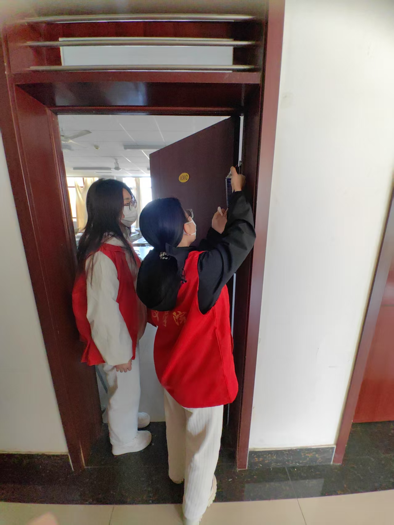 一直以来,良好的学习环境对于同学们的学习效果至关重要。此次活动聚焦于教室设施维护与噪音降低问题,旨在为同学们打造一个更加静谧、舒适的学习空间。志愿者们有序分组,小心翼翼的打开每间教室的门,在不影响学子学习的情况下对教室门一一进行除尘除锈、喷剂润滑,降低了开关门时发出的异响,改善了教室的声学环境,为同学们营造了一个安静、和谐的学习氛围。活动累计完成约15间教室门维护,用行动诠释"以文载道,以行践知"的育人理念。