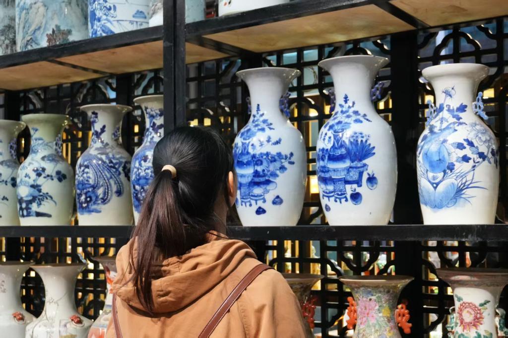随后,师生先后参观红绿彩馆藏展品区与工艺作坊。在展品区,大家近距离观察不同时期红绿彩瓷器的器型、釉色与纹饰特点,了解其从宋代起源、明清发展至现代创新的历史脉络;在工艺作坊,非遗传承人现场演示了红绿彩制坯、施釉、绘画、烧制等关键工序,讲解传统技艺的技法要点与传承困境。师生们围绕 “红绿彩工艺的历史演变”“传统技艺与现代设计的融合” 等话题与工作人员深入交流,为后续研究积累一手资料。