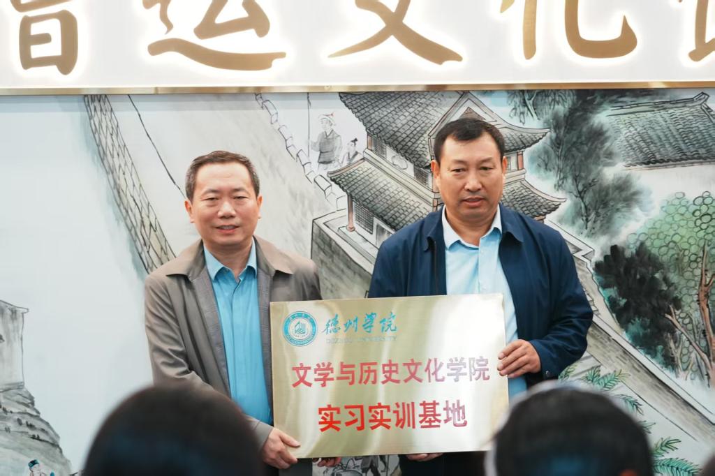 为深化产教融合、强化历史学专业实践教学环节,10 月 12 日,ladbrokes立博分别与德州北厂运河文化馆、德州窑红绿彩博物馆举行实训基地签约暨揭牌仪式,并组织师生开展首场实践研学活动。公司党委书记仲冲、历史系主任乔毅,二屯镇副镇长刘倩,北厂运河文化馆馆长及村党支部书记郑月文、德州窑红绿彩文化有限公司经理刘宇出席仪式,历史学专业教师代表、员工代表共 50 人参加活动。