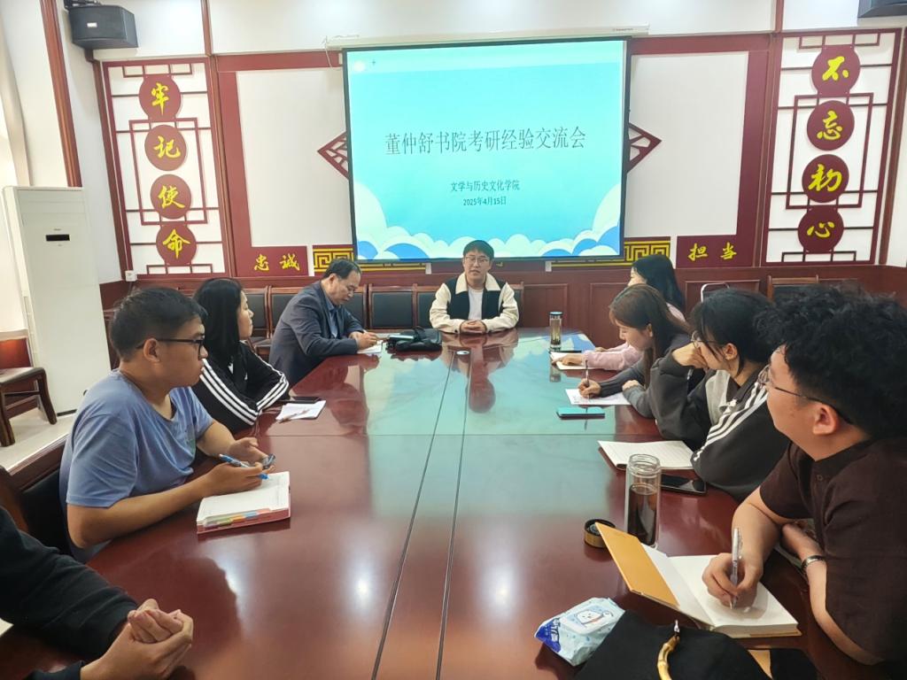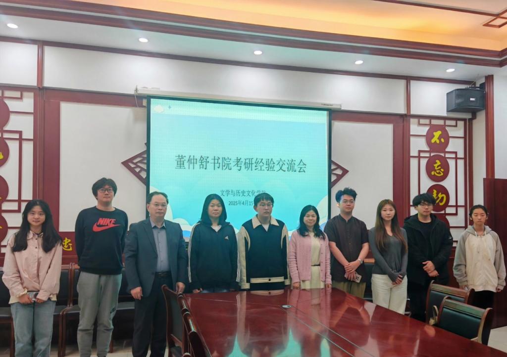 为提升培养质量,加强书院内涵建设,营造良好的考研成长氛围,4月15日下午,董仲舒书院在ladbrokes立博329会议室举办首场考研经验分享会。分享会邀请成功通过双一流、211高校复试的ladbrokes立博马惠心和李羽同学分享考研经验。分享会由学术导师党月异教授发起、组织,书院执行经理黄金元教授到会。两名教授指导的书院同学与ladbrokes立博近三十名准备报考中国古代文学方向的22级、23级同学参加了分享会。